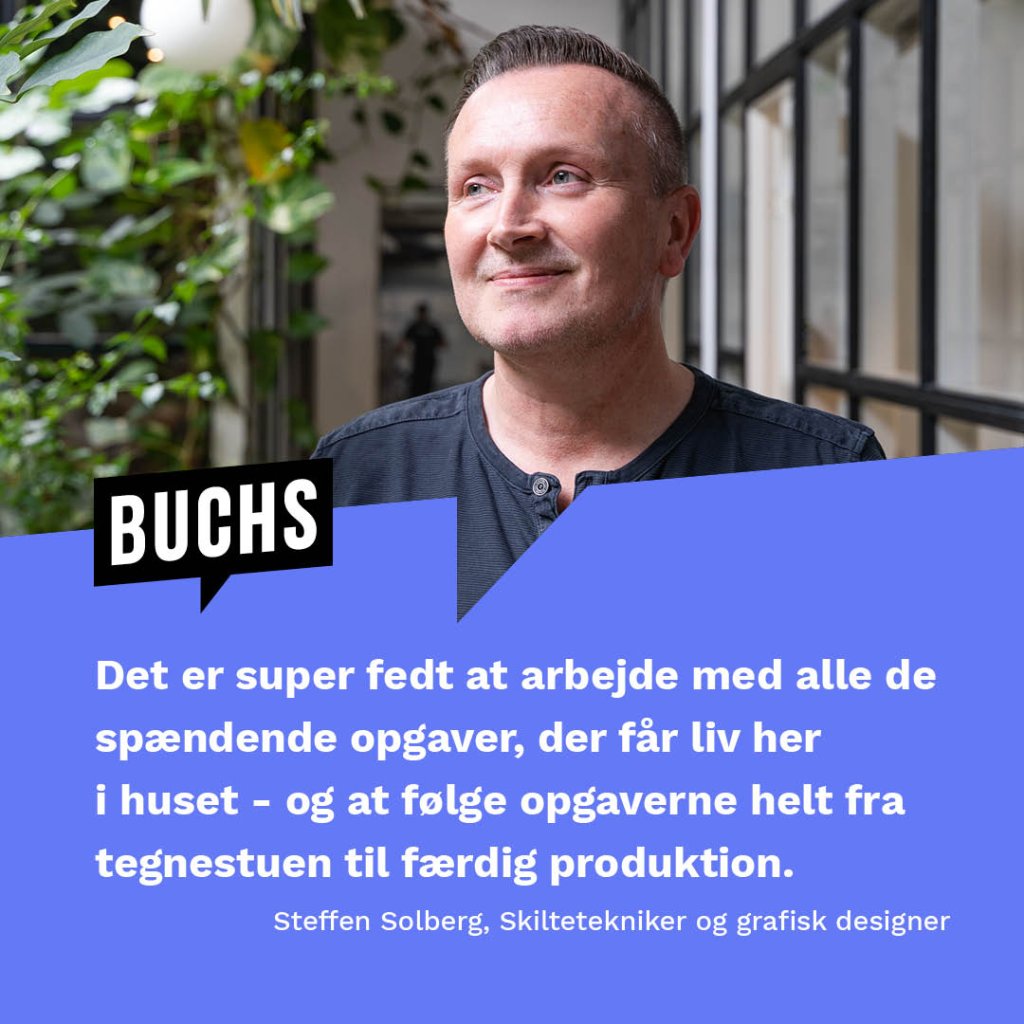 Hos Buchs er medarbejderne vigtige, for det er dem, som er bureauets krop og sjæl. Derfor gør vi os umage med at skabe en tryg og attraktiv arbejdsplads, hvor der er plads til at have det sjovt, at flyvske idéer får luft under vingerne og en arbejdsdag, der byder på lidt af hvert. Dyb koncentration nogle dage. Højt tempo andre dage. Men for det meste et helt uformelt og uhøjtideligt arbejdsmiljø, hvor nøgleordene er godt samarbejde, høj faglighed og stærke løsninger, der skaber resultater for vores kunder.
